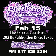 SweetHeart Showdown #2 Feb 15th at The EXPO at Glen Rose Online Entries open thru 9am Feb 15