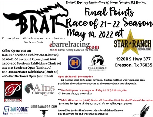 | Painted Ponies | 4D | 3rd | Breanna Walker | RRJetFuel | 17.149 | 0.00 | Sess1 - 71 |