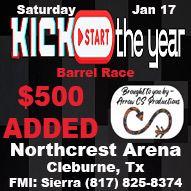 D & D Barrel Productions Abilene April 13-15, 2018 Draw