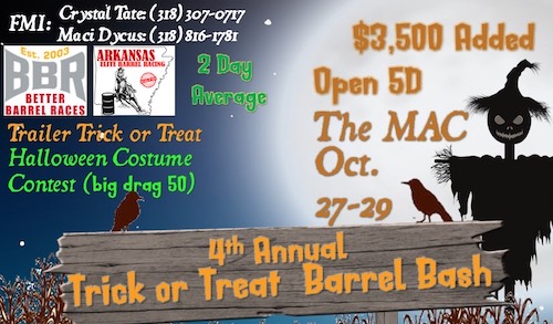 Posted on May 23, 2023August 25, 2025 by tamet4th Annual Trick or Treat 5D Barrel Bash $3500 Added For more info on the arena click here