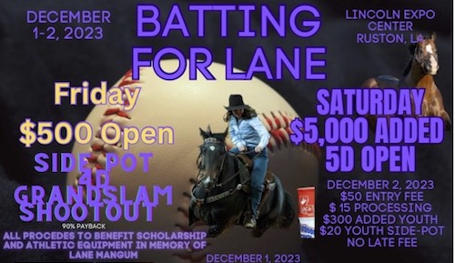 Posted on October 13, 2023November 9, 2023 by tametBatting For Lane $5000 Open 5D Dec 1 & 2 Need to draw/vet out or make changes CLICK HERE For more info on the arena click here