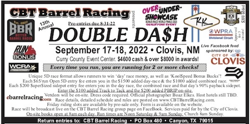 CBT Barrel Racing 13th Annual Double Dash Sept 17-18
