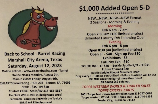We will be @ Marshall City Arena – Fri/Sat/Sun, October 20-21-22, 2023.