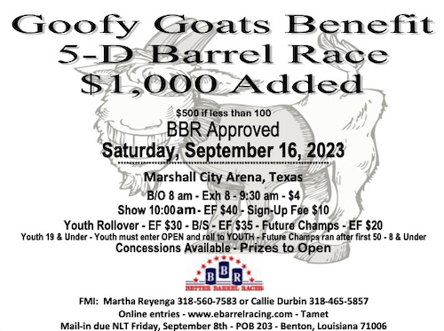 Goofy Goat Benefit Race – Marshall City Arena, TX