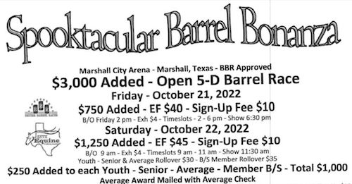 Posted on September 28, 2022October 25, 2022Spooktacular Barrel Bonanza Oct 21-22 Click here to view the draw