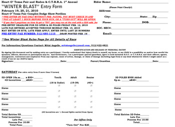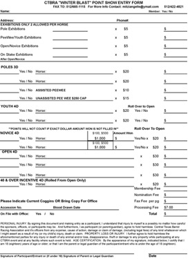 CTBRA Winter Blast Point Show Entry Form -