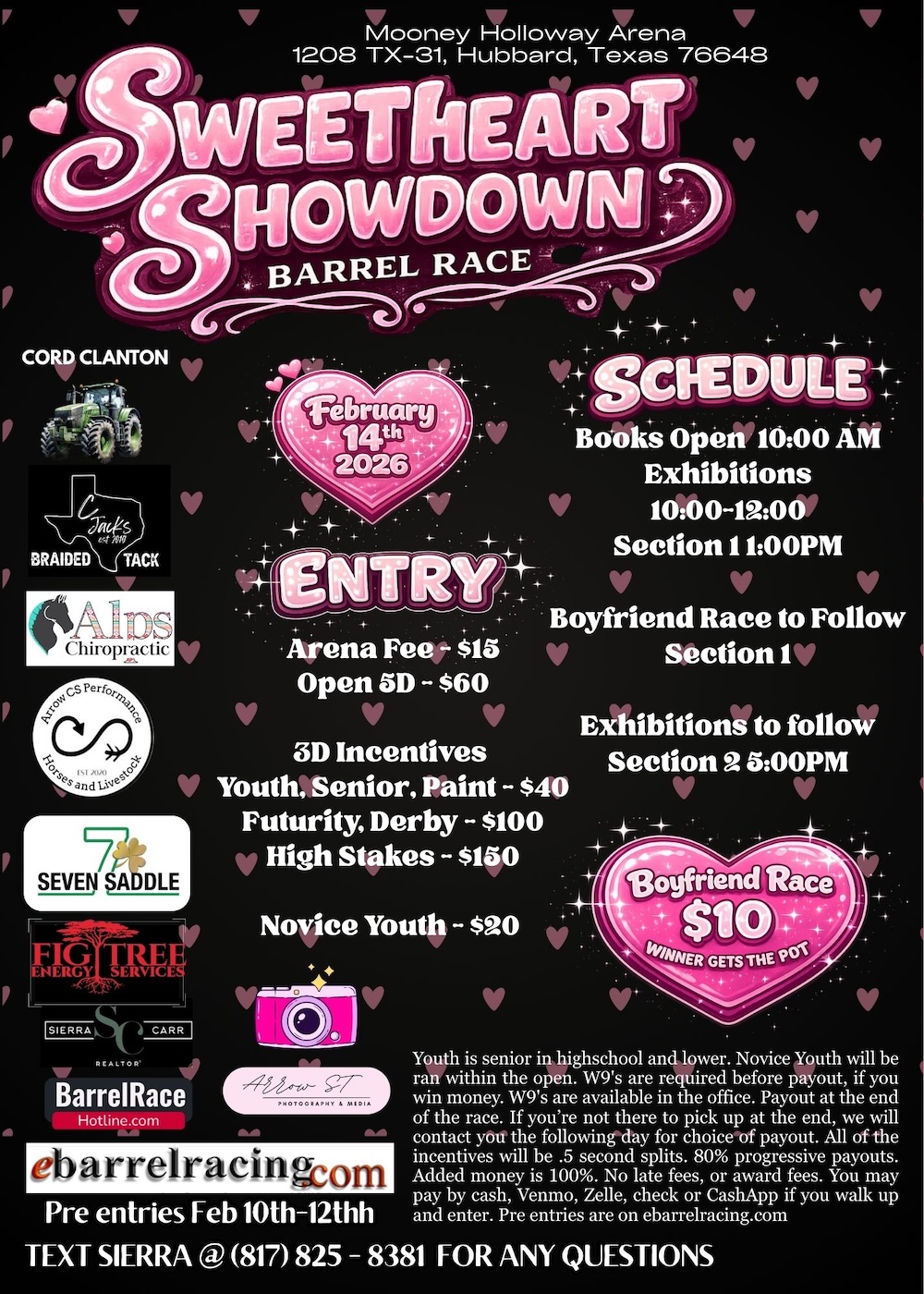 Home Events - Ebarrelracing.com Arrow CS Productions Barrel Race Derby Sidepot Equivent Enter Online Exhibitions Futurity Open Senior Inc. Youth Inc. Sweetheart Showdown Barrel Race Online Entries Open Feb 10th – 12th The event is finished. Local Time Timezone: America/New_York Date: Feb 14 2026 Time: 11:00 am - 11:00 pm Cost $60.00 More Info Enter Online Here Labels Enter Online,Featured Category Arrow CS ProductionsBarrel RaceDerby SidepotEquivent Enter OnlineExhibitionsFuturityOpenSenior Inc.Youth Inc. Organizer Arrow CS Productions Phone 817-825-8374 Email sierra.marie6577@yahoo.com Sponsors Arrow CS Productions Ebarrelracing.com Share this event Weather Light rain 74 °F Wind: 17 MPH Humidity: 79 % Feels like: 78 °F X